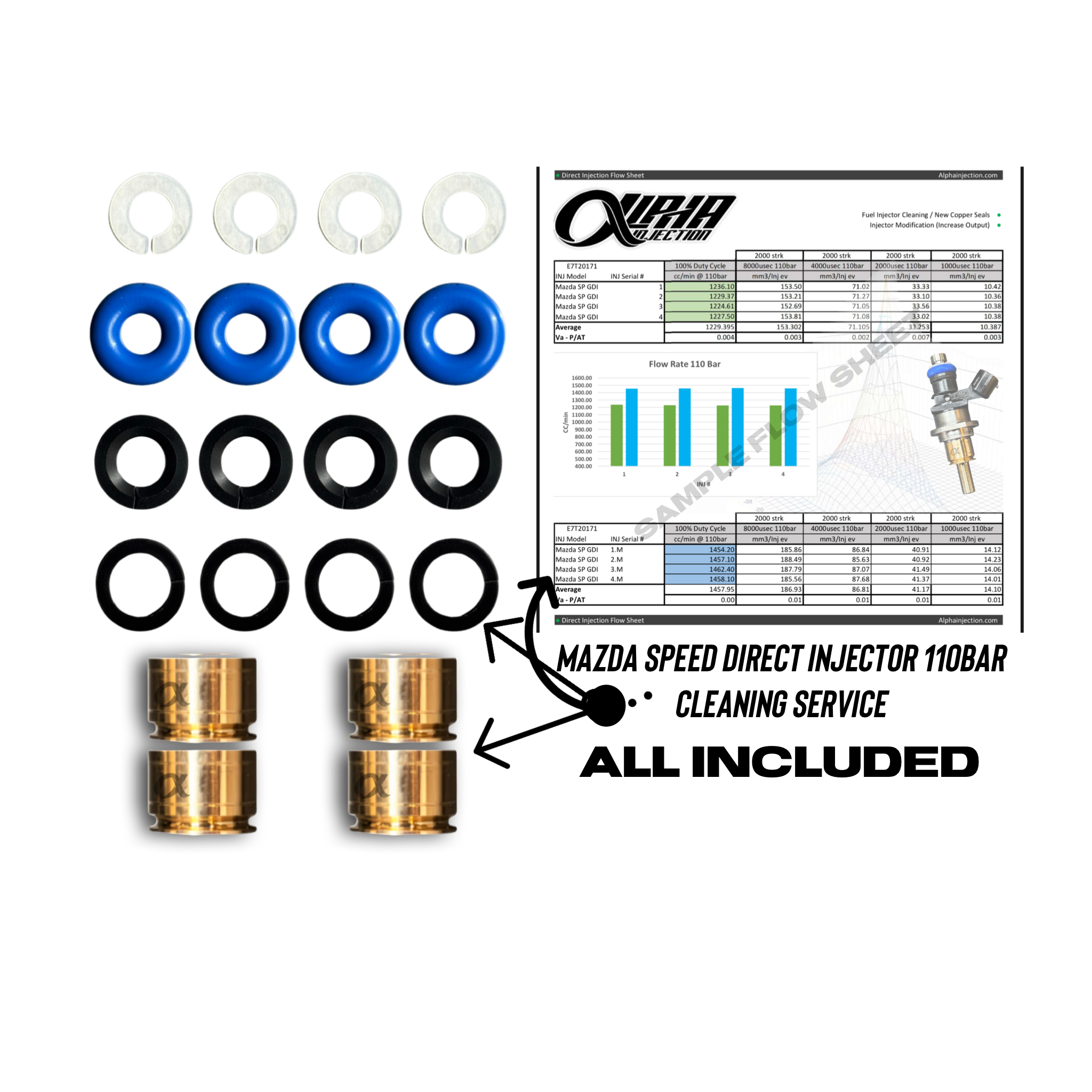 If any injectors are found too far out of spec, they will be replaced and flow-matched to the rest of the set. Additional cost required if applicable.